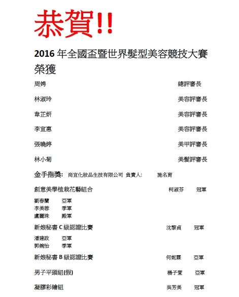 恭喜 2016.12.8全國盃 得獎者!!